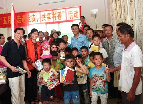 5月29日,海口分公司聯(lián)合海南廣播電視總臺新聞廣播《百草園》欄目,共同開展“走進定安,共享書香”愛心捐助和營銷活動。60多名海汽志愿者和百草園聽友參觀了擁有三百多年歷史的定安新竹鎮(zhèn)次灘村和被評為全國學(xué)雷鋒活動示范點的定城鎮(zhèn)多校村“知海書屋”。??诜止緸榇螢┐逦幕液?ldquo;知海書屋”贈送圖書、籃排球和羽毛球拍等,以實際行動支持社會主義新農(nóng)村建設(shè),彰顯企業(yè)的社會責(zé)任。